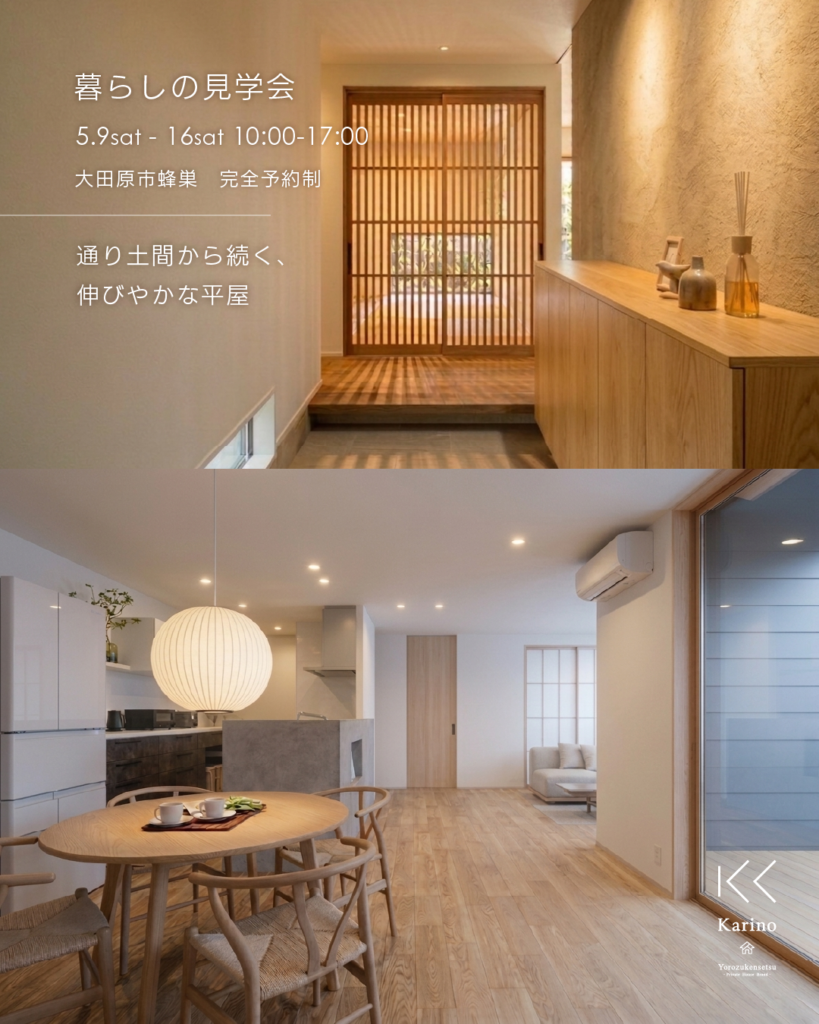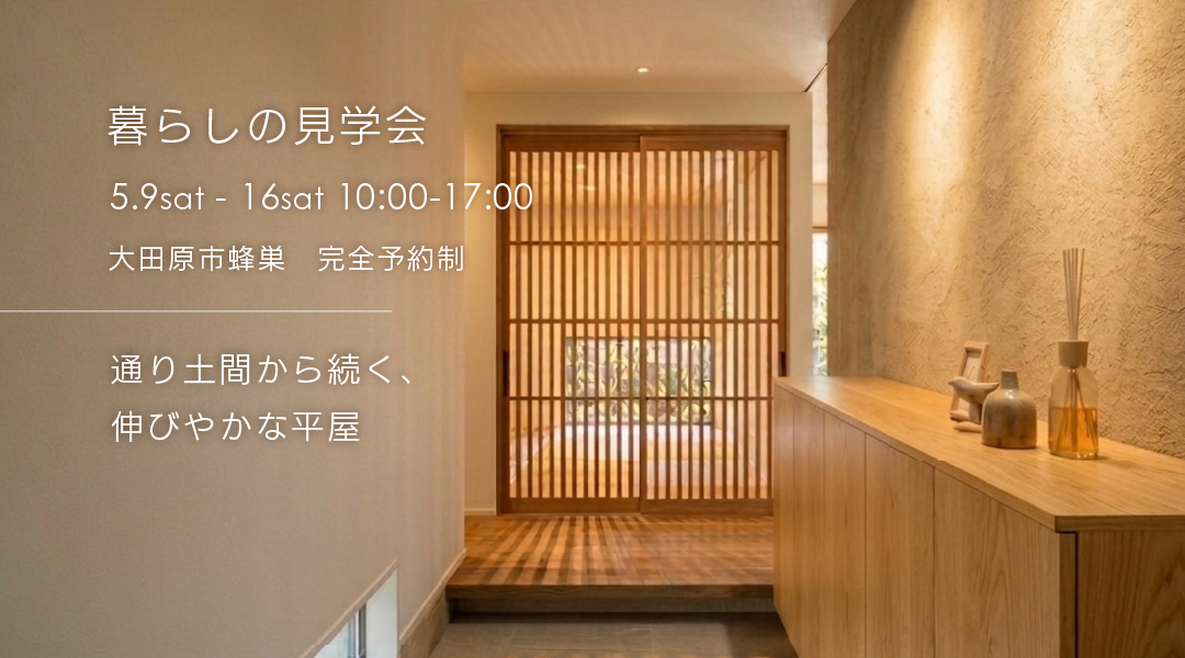 大田原市蜂巣にてGW明けの5月9日(土)から16日(土)の期間、平屋の完成見学会を開催いたします。