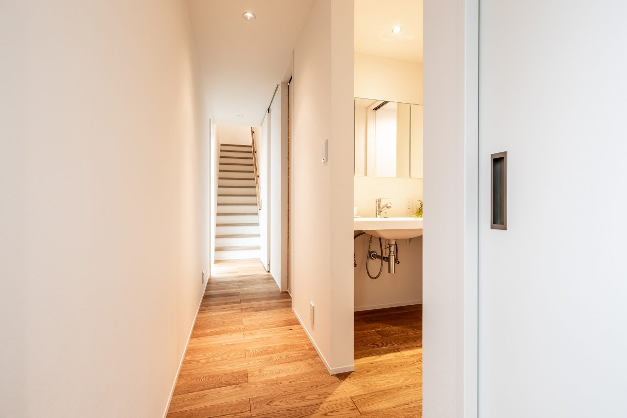 Karino 長廊下の家 長廊下によって、家族の時間と個人の時間の両方を大切にできる家。 DETA 建築地 矢板市 家族が集まるLDKなどのパブリックゾーン。 各個人が利用するプライベートゾーン。 その二つの間に洗面所やトイレなどのサービスゾーンを配し、廊下でつなぐ。 パブリックゾーンとプライベートゾーンに距離を生むことで、 家族の時間、個人の時間の両方を大切にできる。 廊下は壁面を大きく取ることで、絵や家族写真を飾り ただの通路ではなく+αの空間となるよう計画をした。