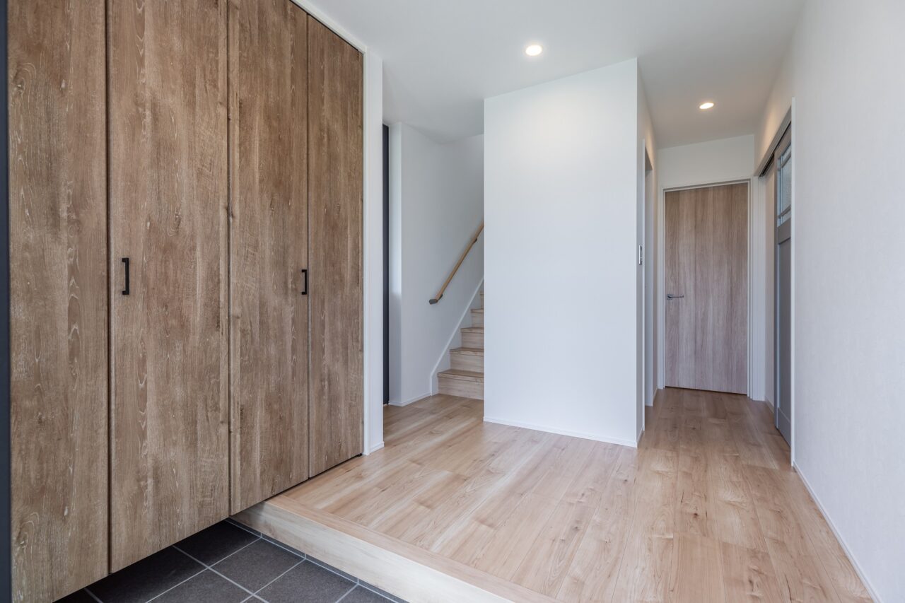 玄関には靴やアウトドア用品をすっきり収める土間収納を。